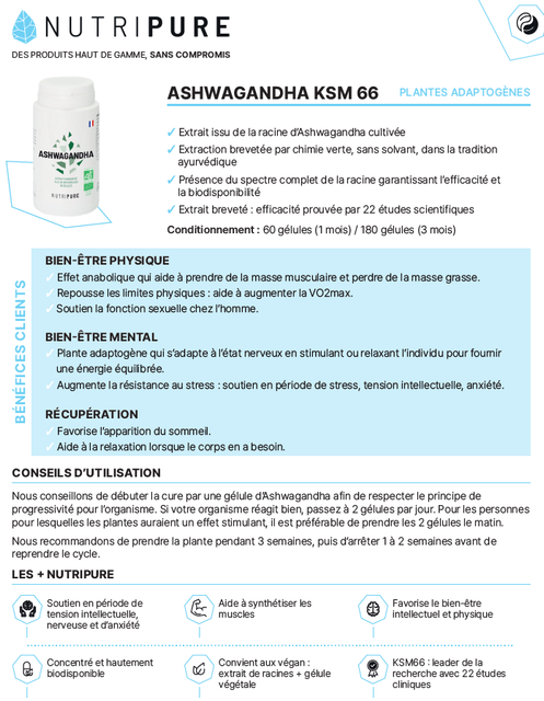 ✔️ La référence : Ashwagandha KSM66® – Agriculture Bio – extrait standardisé et concentré