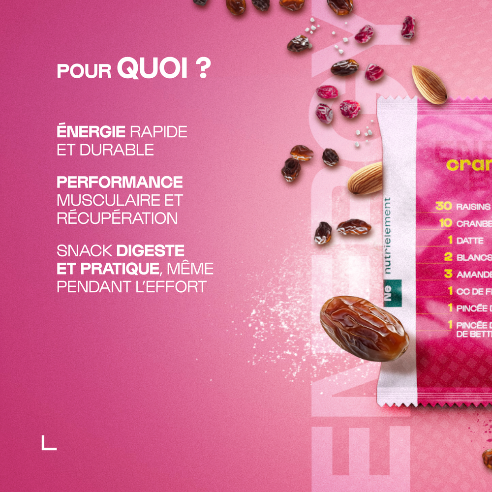 Idéales en collation ou comme source d’énergie avant, pendant ou après l’entraînement.