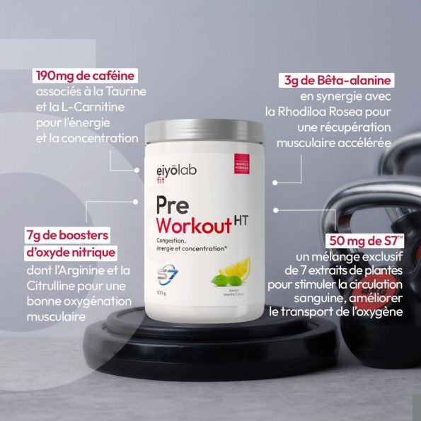 🚀 Chaque principe actif du Pre Workout HT a été soigneusement sélectionné pour optimiser chaque dimension de l’effort physique : plus d’énergie, plus de force et plus concentration pour des séances maximisées !