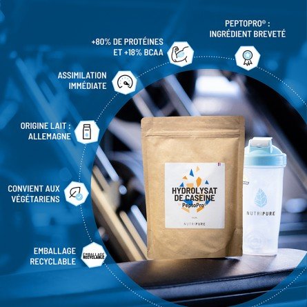 ✔️ Whey Isolat Native, Collagène breveté type I (2000 daltons), Créatine Creapure®, Glycine, Magnésium et Zinc.